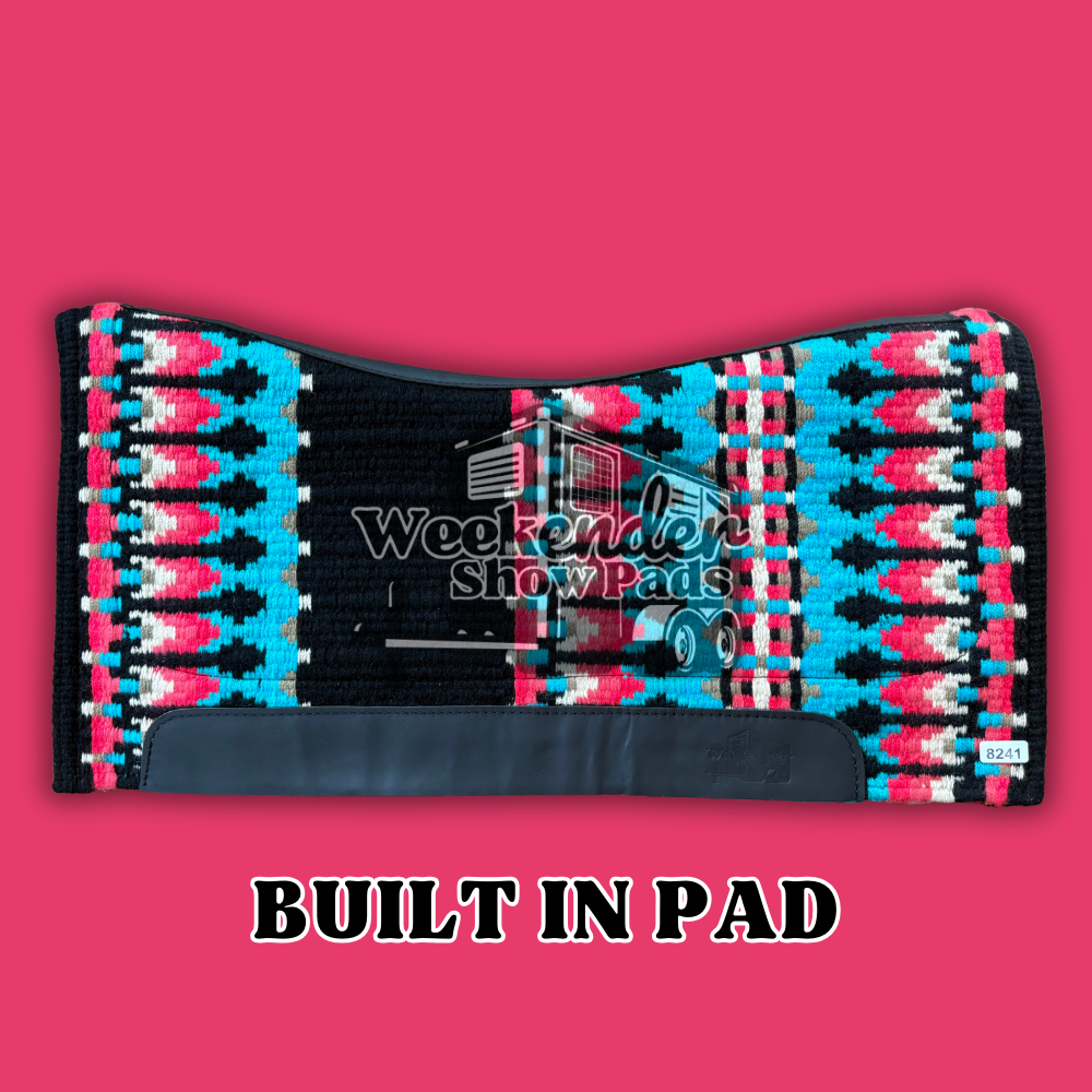 COLORS: BLACK BASE, CORALS, BLUES, ASH GRAY TAN, WHITE